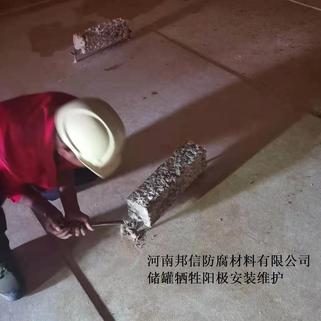儲(chǔ)罐鹵水罐防腐工程鋅合金犧牲陽極安裝 2021-10-16